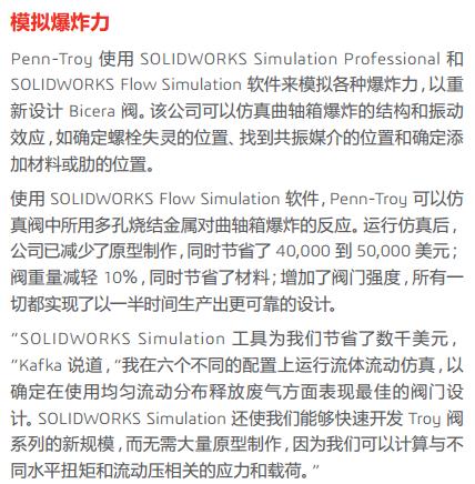 Penn-Troy Manufacturing 利用 SOLIDWORKS設(shè)計(jì)、仿真、 CFD 分析、 PDM 和技術(shù)交流解決方案來縮短設(shè)計(jì)周期、提高質(zhì)量、減少原型并擴(kuò)展其專業(yè)水和防爆安全閥系列。